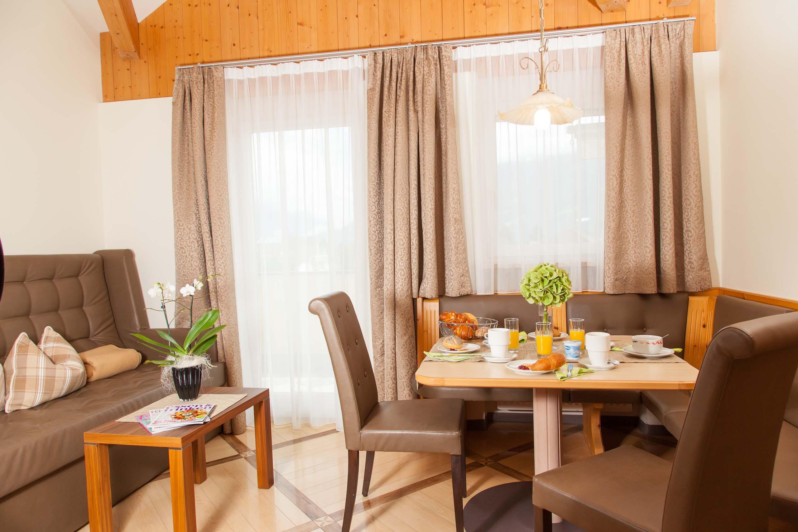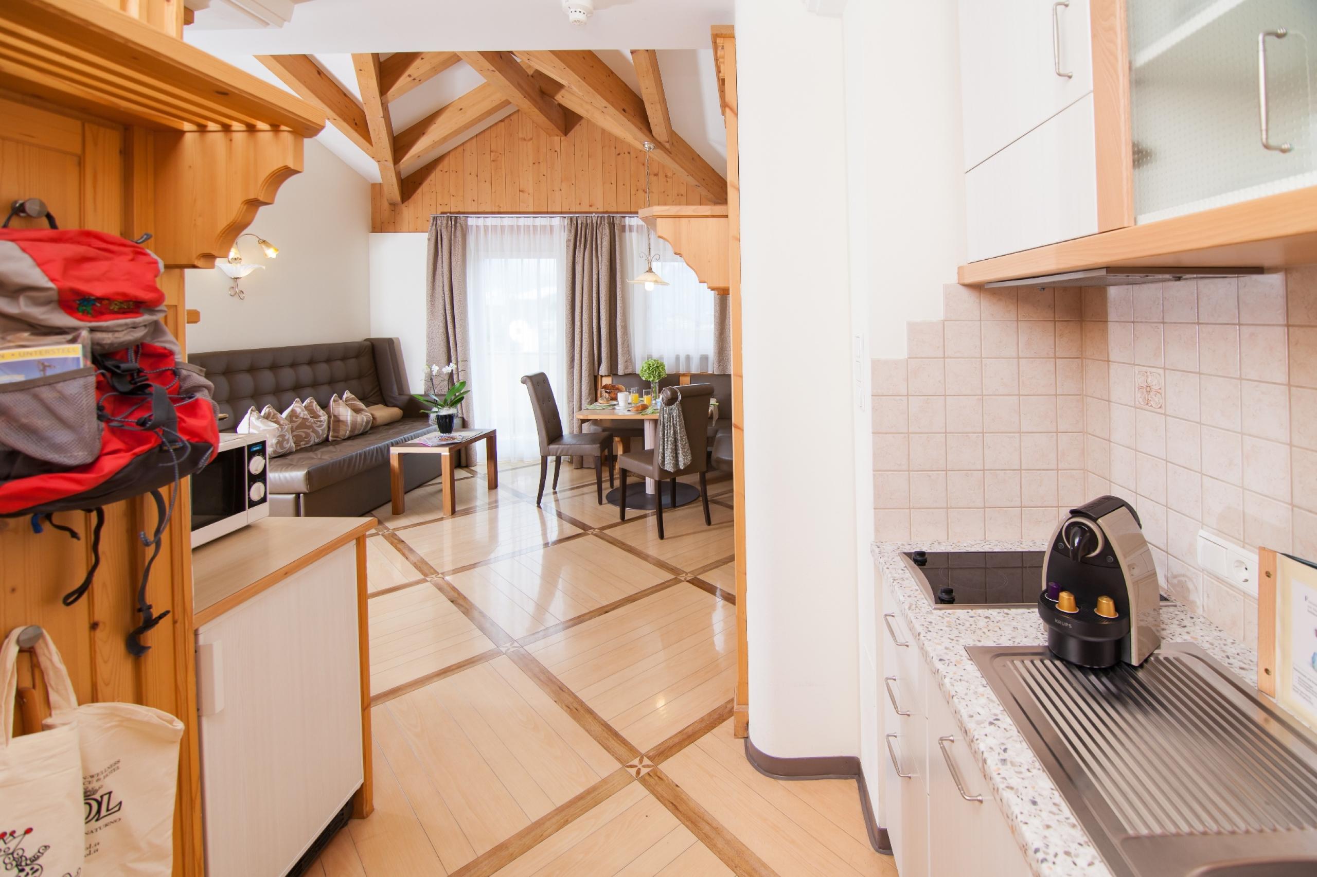 Das aussichtsreiche Dreizimmerapartment für maximal 6 Personen wurde mit viel Liebe zum Detail eingerichtet. Es besteht aus einem Doppelzimmer mit Flachbild-TV, einem separaten Kinderzimmer im Tiroler Stil mit zwei Einzelbetten samt Rausfallschutz und Sternenhimmel, einem Wohnzimmer mit Komfort-Doppelbettcouch und Flachbild-TV, einer kleinen Kochnische mit kompletter Kücheneinrichtung, einem Badezimmer mit Badewanne oder Dusche, WC, Waschbecken und separatem Kinderwaschbecken, Balkon mit Panoramablick zur Nord- oder Ostseite und Ventilatoren im Sommer.