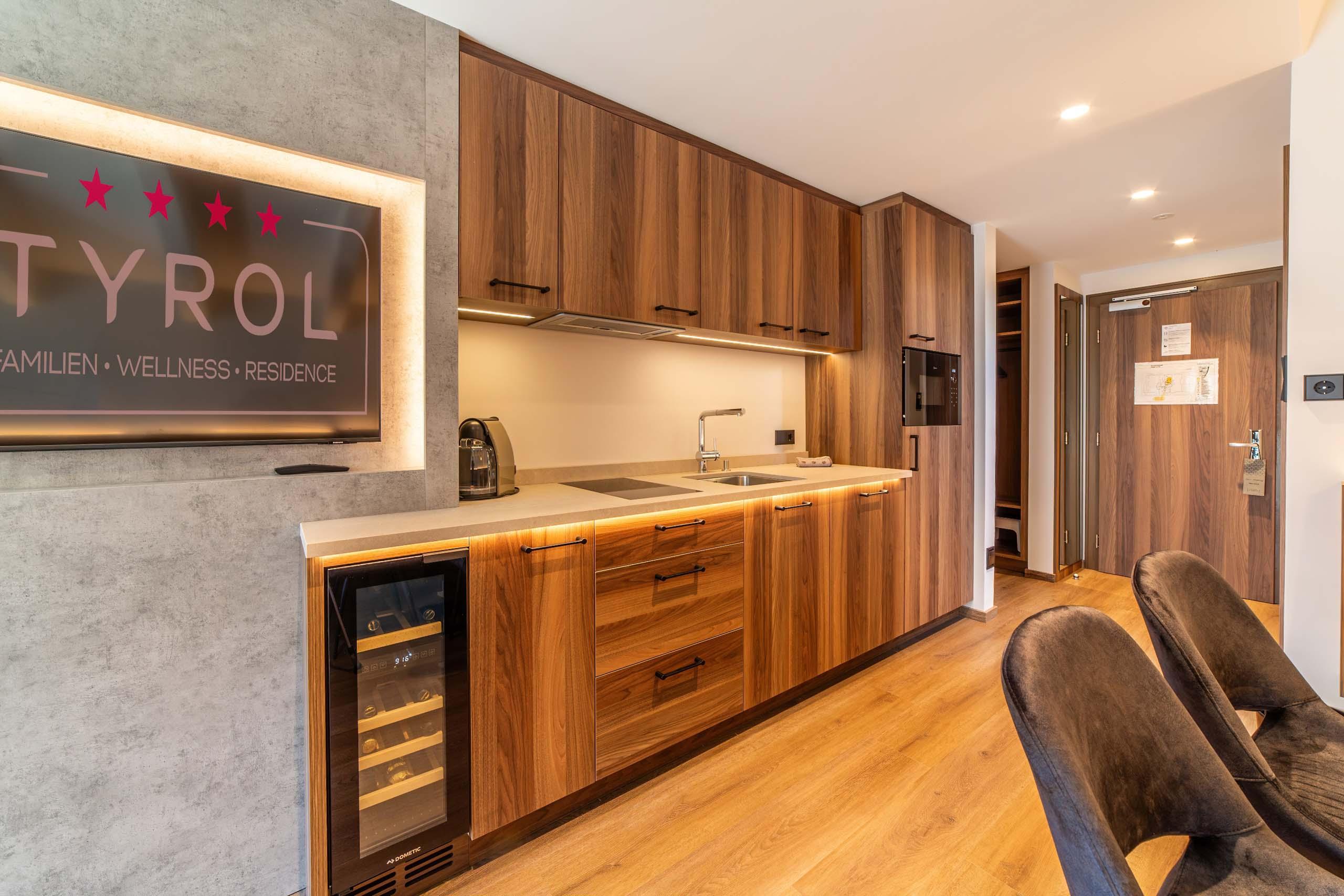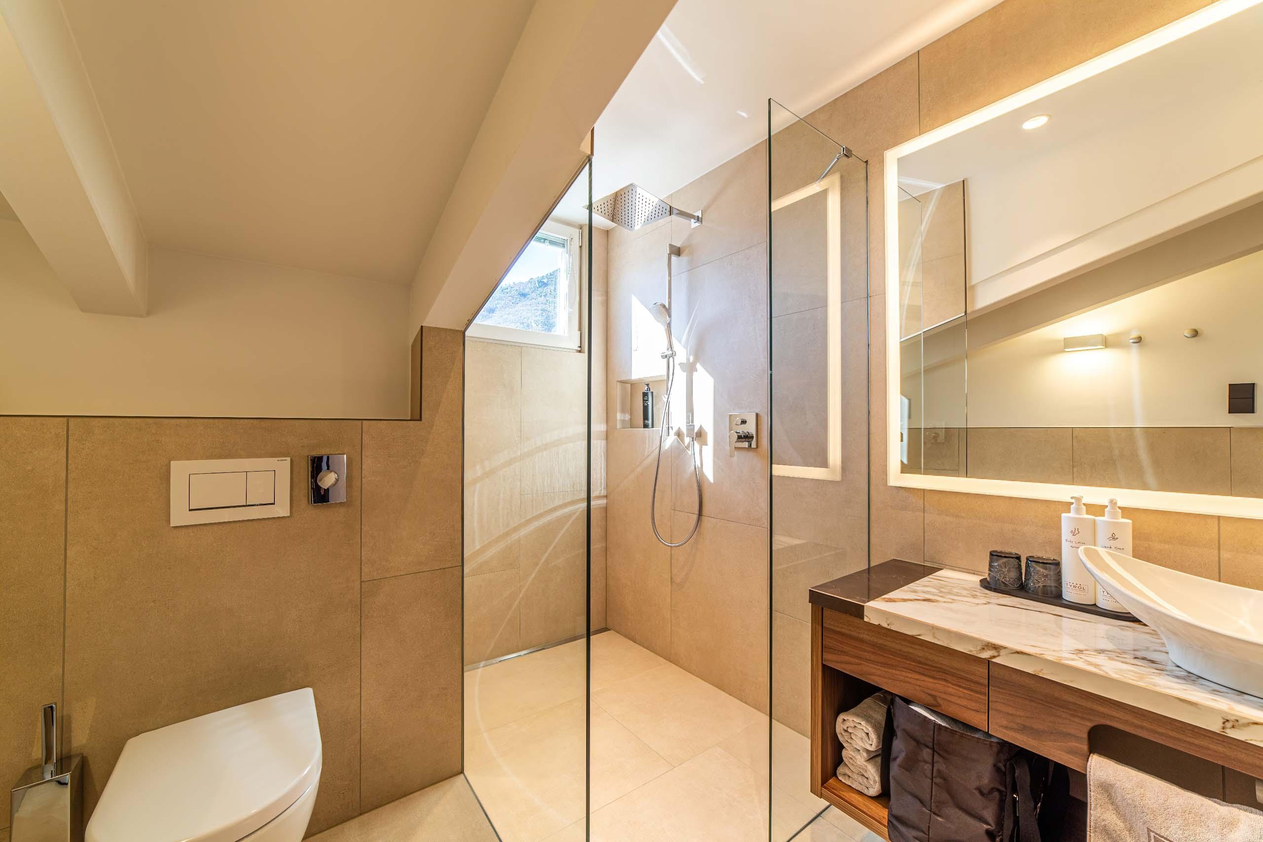 Questo trilocale arredato con stile per un massimo di 6 persone affascina per la vista panoramica e il suo elegante stile alpino. È composto da una camera doppia con TV a schermo piatto, una camera separata con cielo stellato, due lettini singoli e un divano con funzione di letto a castello per un massimo di 2 bambini, un soggiorno con grande divano letto per famiglie e TV a schermo piatto, un piccolo angolo cottura con cucina completamente attrezzata, compreso mobile per i vini, un bagno con vasca, WC, lavabo e lavabo separato per bambini, un altro bagno con doccia, WC e lavabo, un balcone esposto a sud con vista sulle montagne e aria condizionata.